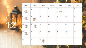 12月は年末(25日~)にかけてご予約が集中しやすい時期となります。